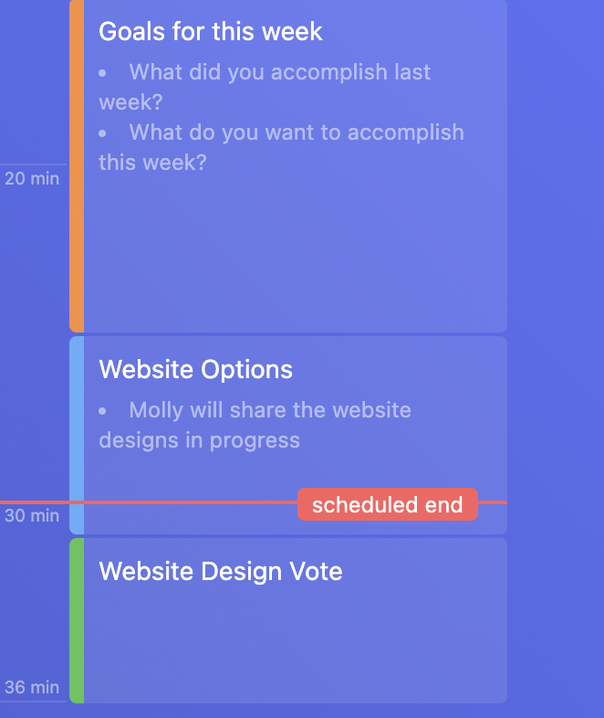 While you're running the meeting, Sesh will let you know with visual cues when your meeting is going longer than you had planned.